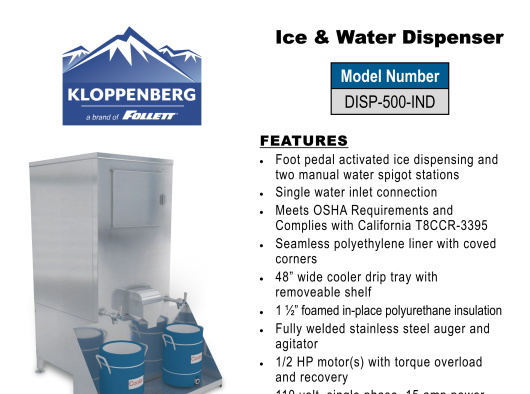 Kloppenberg-DISP500IND-IceandWaterDispense-Specsheet-1