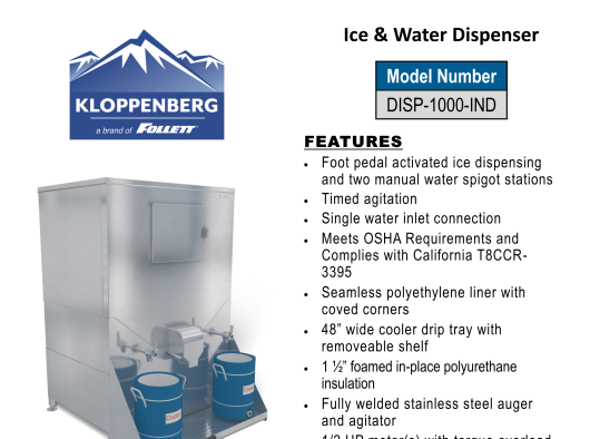 Kloppenberg-DISP1000INDTF-IceandWaterDispense-Specsheet-1
