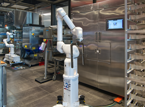 The Lab2Fab PizzaBot™ automates the pizza making process from formed dough with the application of sauce and toppings then to baking. PizzaBot™ adds toppings such as sauce, cheese, pepperoni, sausage and more accurately and quickly. The result is a better and more consistent pizza pie with less food waste and reduced labor needs.